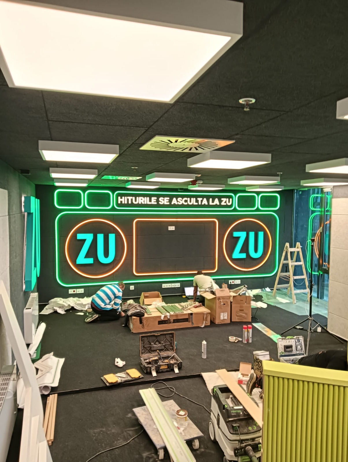 Gas Media produce Neon Flex personalizat, la orice dimensiune, culoare sau font, cu proiectare, tăiere CNC, iluminare LED premium, suport, distanțiere și montaj profesional. Livrăm în toată țara, gata de instalare.